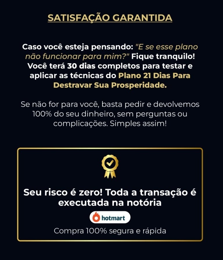 Se não perceber mudanças significativas em 3 semanas, devolvemos 100% do seu investimento.